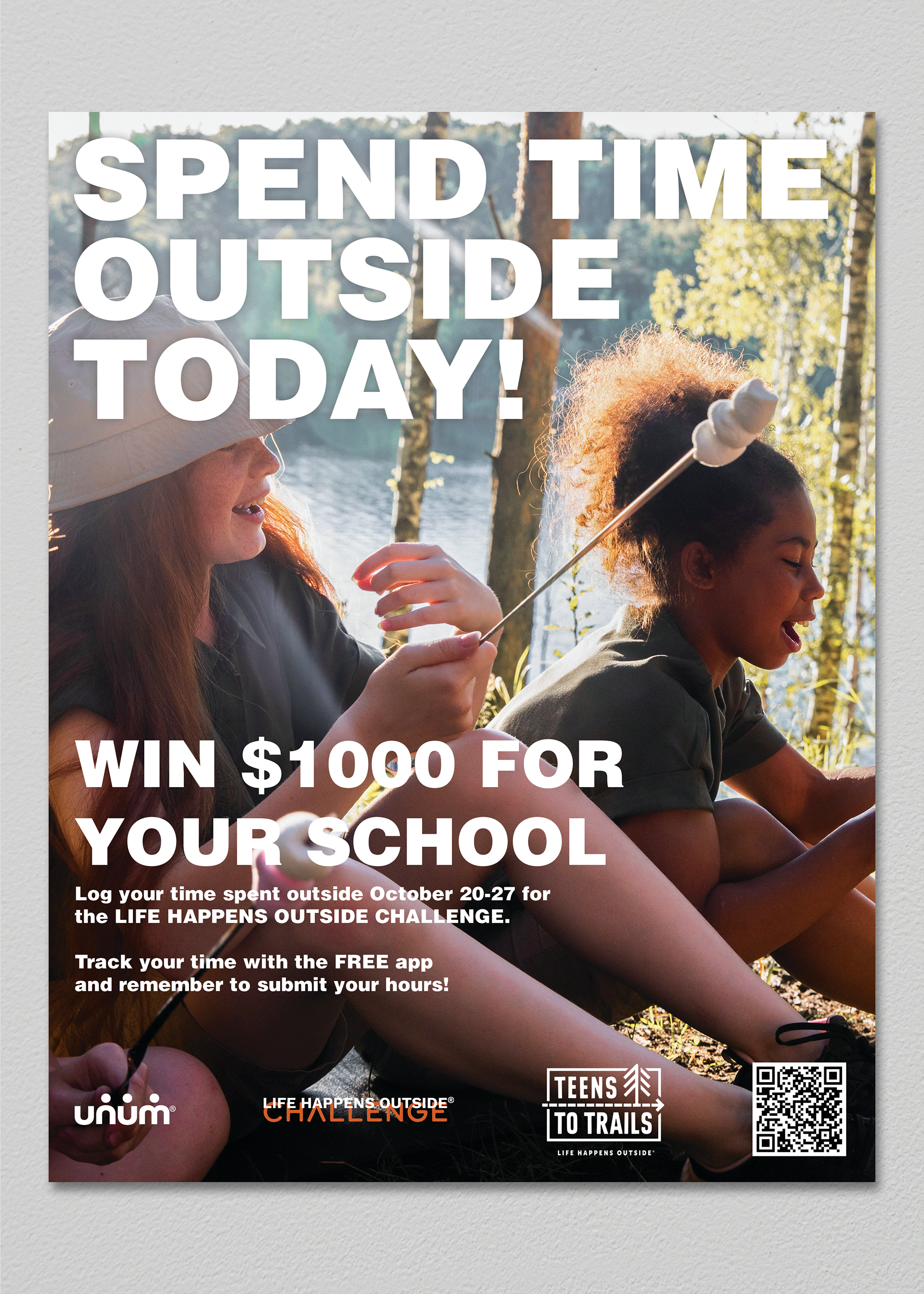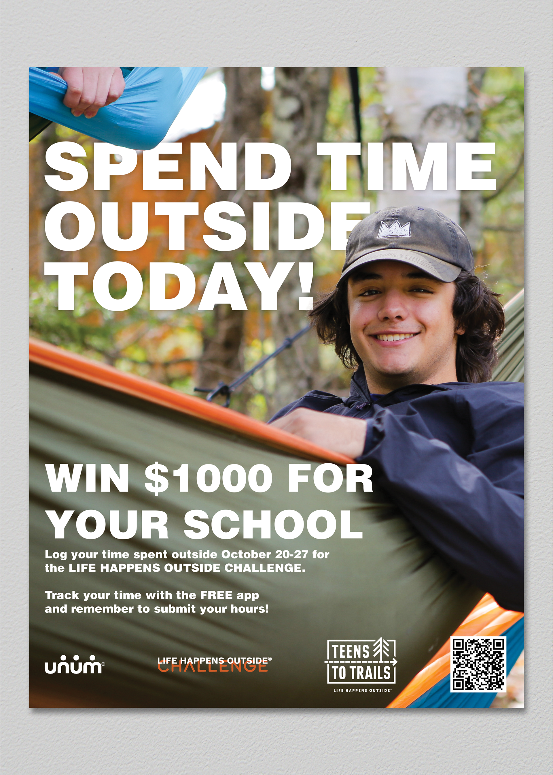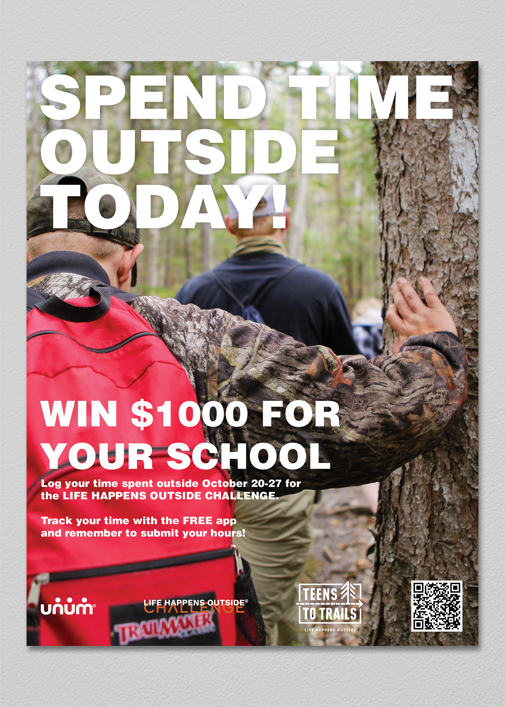 Posters, post cards and app concept developed for Teens To Trails, a Maine based non-profit to promote their Life Happens Outside Challenge.